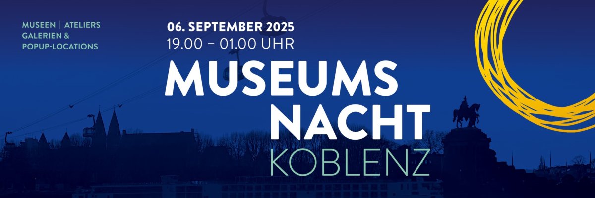Am Samstag, den 06. September 2025 öffnen ab 19 bis 1 Uhr Koblenzer Ateliers, Galerien und Museen ihre Türen, um Kulturinteressierten in und um Koblenz eine ganz besondere Nacht zu ermöglichen. Besucher:innen können sich auf eine Nacht mit einem breit gefächterten Kulturangebot freuen, das Kunst, Musik, Theater, Workshops und vieles mehr umfasst.