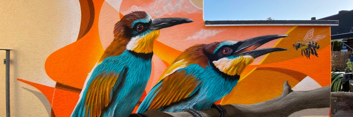 Ich arbeite überwiegend mit Sprühdose und Airbrush, mit denen ich vorzugsweise Tiermotive und Portraits umsetze. Inzwischen male ich seit 9 Jahren und davon seit 5 Jahren beruflich.